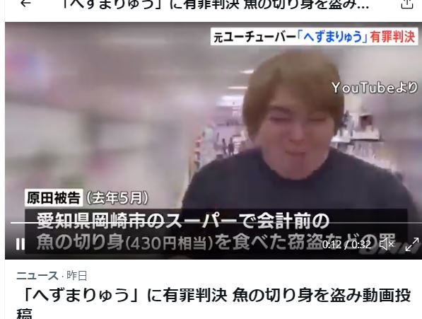 | へずまりゅう 裁判中にYouTube出演の呆れた無反省…執行猶予取り消しの可能性も(女性自身) - Yahoo!ニュース - Yahoo!ニュース へずまりゅう 裁判中にYouTube出演の呆れた無反省…執行猶予取り消しの可能性も(女性自身) - Yahoo!ニュース Yahoo!ニュース (出典:Yahoo!ニュース) |